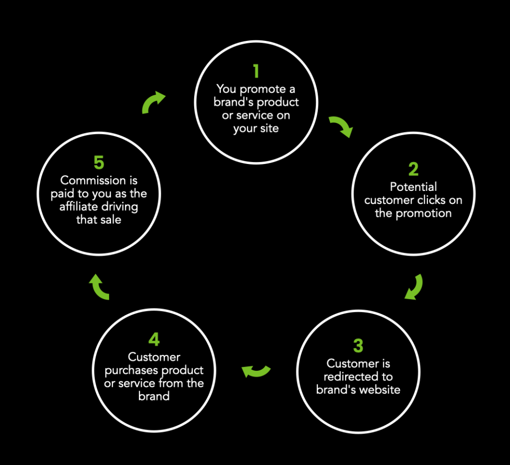 You recommend a product or service from a trusted brand. Someone sees your promotion, clicks your unique link, and is taken directly to the brand’s website.